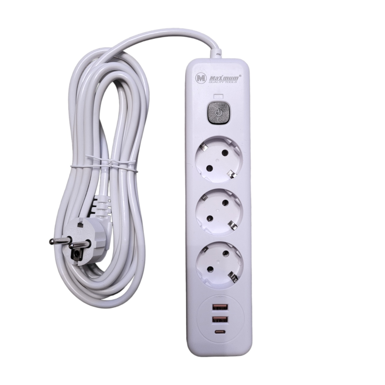 Удлинитель с заземлением 2 м, глубокий, 3 EURO розетки, 5 USB портов,Type C, U 314, "MAXIMUM" MX 147